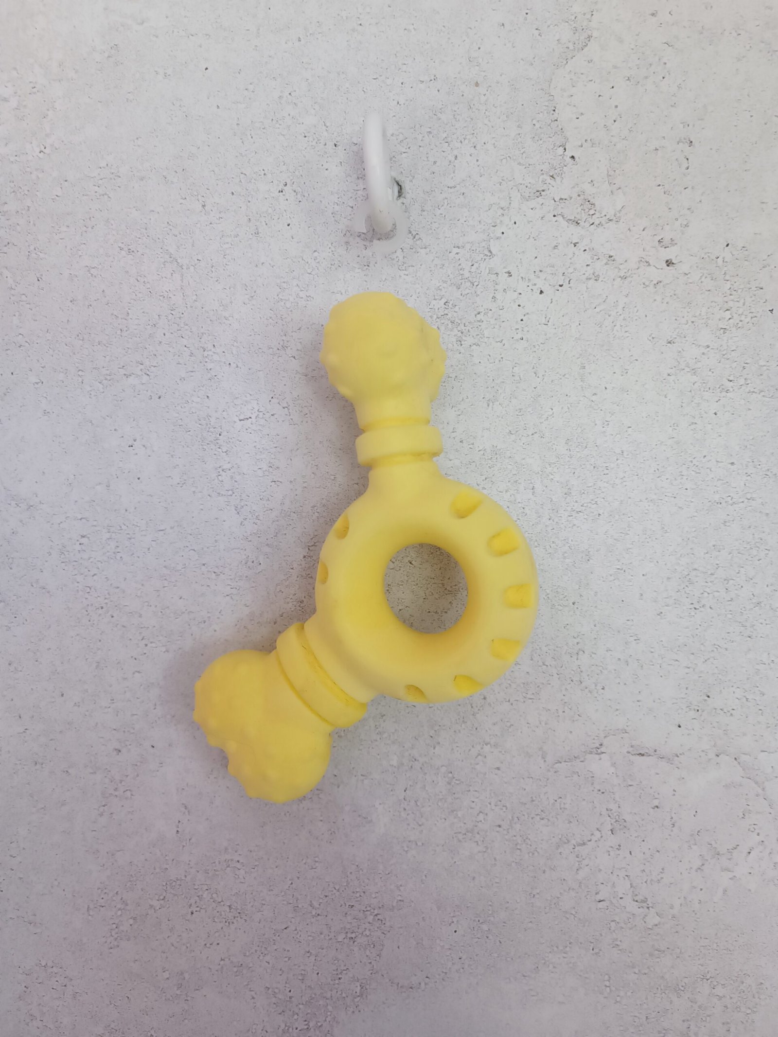 Deze bijtring vanille van het merk Vadigran is gemaakt van stevig TPR. Voor de hond ruikt deze naar appel, waardoor het aanlokkelijk is om in te bijten.
