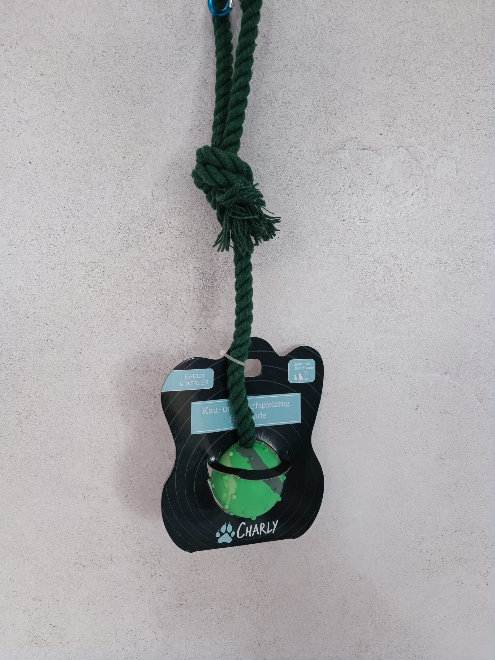 Dit hoogwaardige apportspeelgoed van het Duitse merk Charly combineert kwaliteit met interactief plezier. Het speeltje bestaat uit een zachte rubberen bal (ca. Ø 4,5 cm) opgezet aan een lang, slijtvast touw. Het ontwerp stimuleert actief spel, zoals werpen, apporteren en touwtrekken, en is geschikt voor kleine tot middelgrote honden.