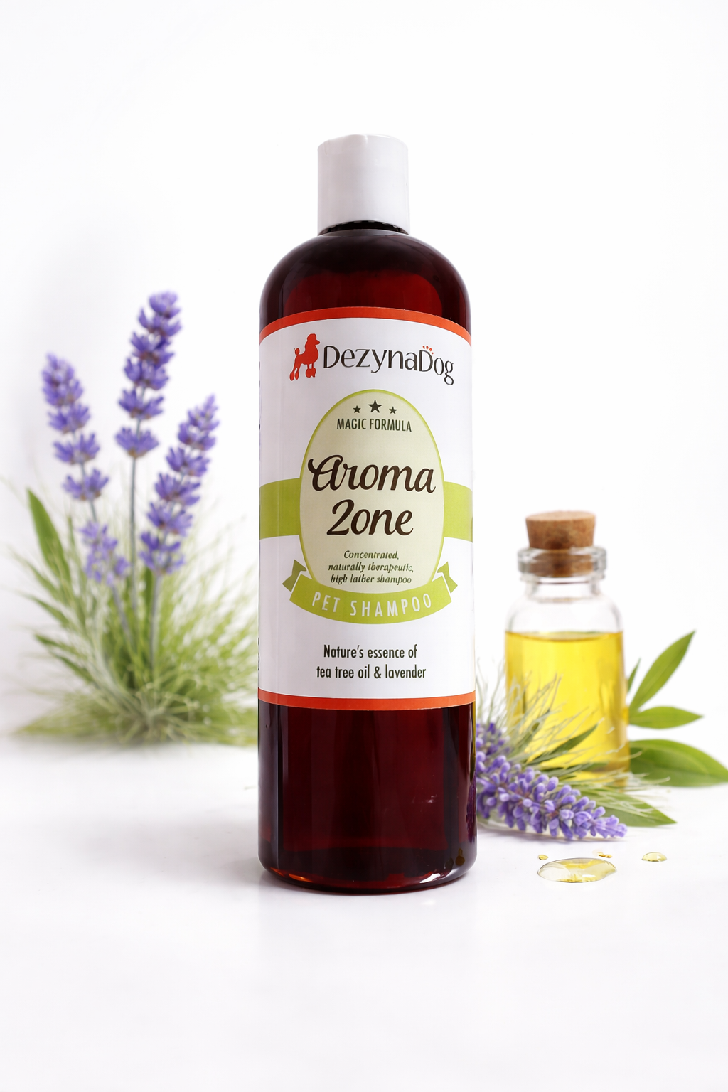 Dezynadog Aromazone Therapeutic Shampoo is een hoogwaardige therapeutische shampoo voor honden, speciaal ontwikkeld om huid en vacht diepgaand te verzorgen en te reinigen. Verrijkt met natuurlijke tea tree-olie en lavendel, biedt deze shampoo een combinatie van kalmerende, helende en deodoriserende eigenschappen, waardoor het ideaal is voor honden met een gevoelige huid, jeuk of irritaties.