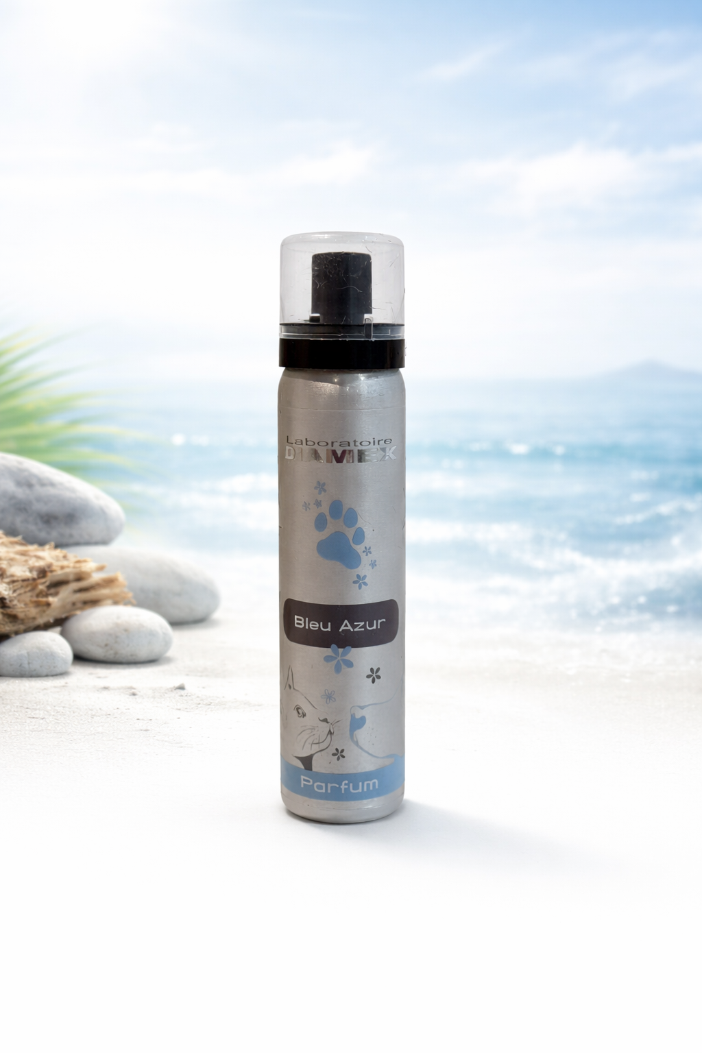 Diamex Bleu Azur Parfum is een kwalitatieve geur spray ontworpen voor de vachtverzorging van honden. Deze geur heeft een frisse, zachte citrus- en zeegeur, geïnspireerd op een aangename zeebries, die de natuurlijke geur van uw hond subtiel verfrist zonder scherp of overweldigend te zijn.