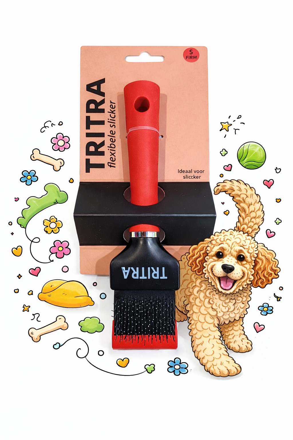 Doodle Borstel hard Tritra is één van de betere slickers op de markt. Hij is zeer geschikt om dagdagelijks te gebruiken bij alle types vacht, met name krulvachten. Bij klitvorming werkt de rode borstel iets doeltreffender dan de groene.
