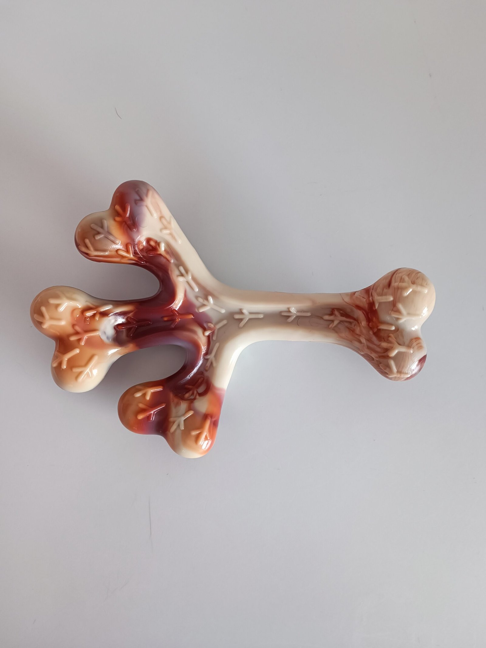Dit kauwbot heeft voor honden de geur van bacon en is 16 cm groot. Mijn Bull Terriers zijn er verzot op en doen er al een hele lange tijd mee. dus zeker een aanrader!